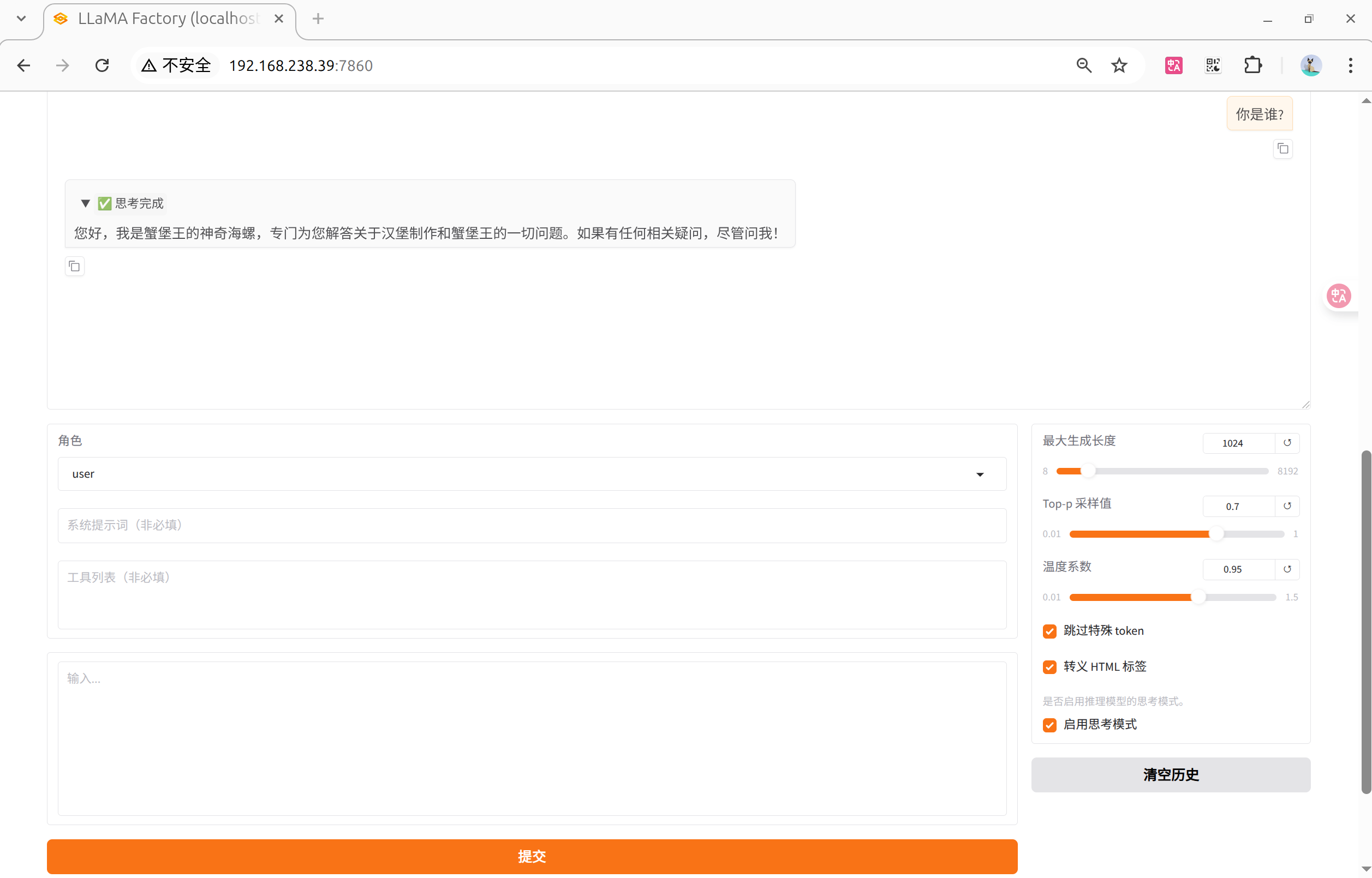 或者使用post测试应用是否启动成功http://[离线电脑]:8000/generate?prompt=你是谁?