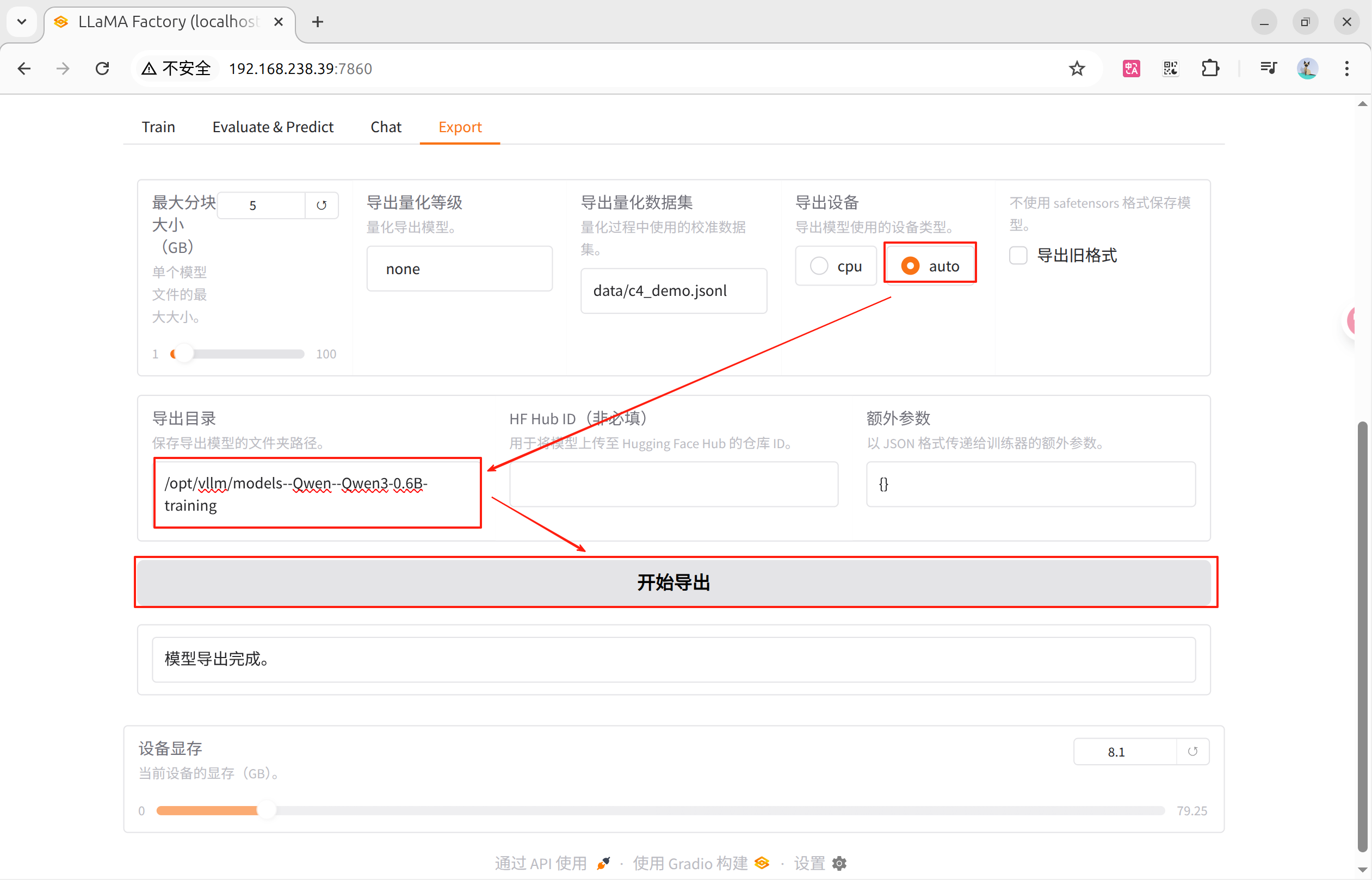 [root@localhost models--Qwen--Qwen3-0.6B-training]# 在页面上配置导出路径,导出即可